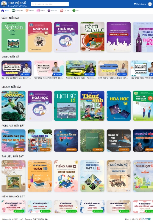 Giải pháp Thư viện số trường THPT Võ Thị Sáu mang đến nền tảng trực tuyến cho việc quản lý tài nguyên đa phương tiện, giúp học sinh và giáo viên tiếp cận một bộ sưu tập đa dạng. Có công cụ tìm kiếm và lọc thông minh, giúp dễ dàng tìm kiếm và chọn tài liệu phù hợp.